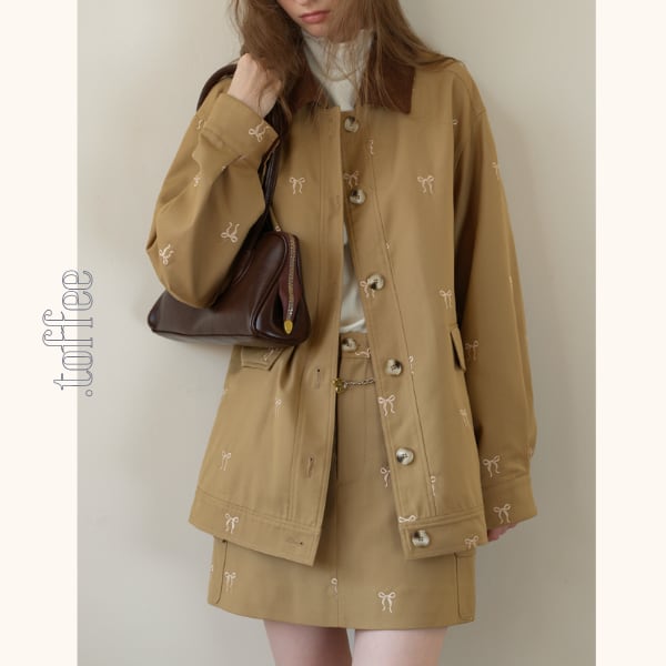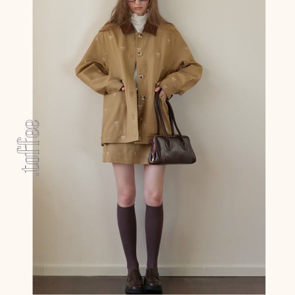 リボン刺繍オーバーサイズジャケット&スカートセットアップ《Z00817》