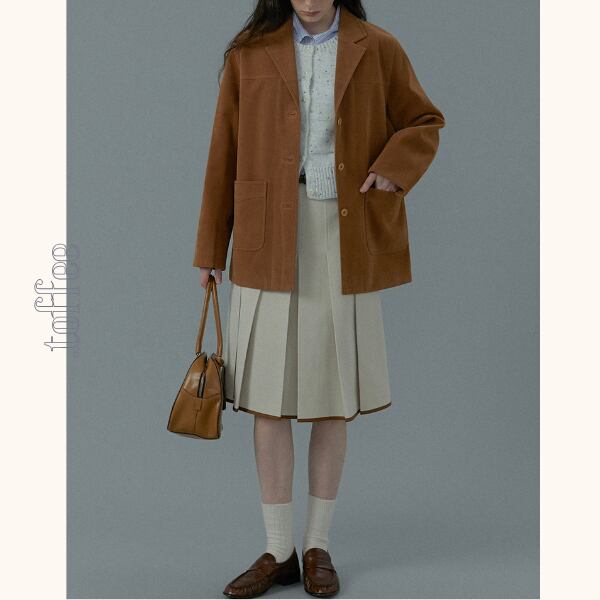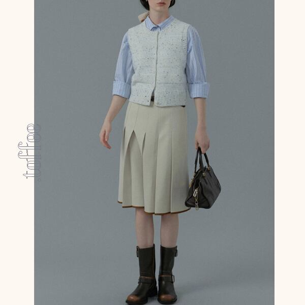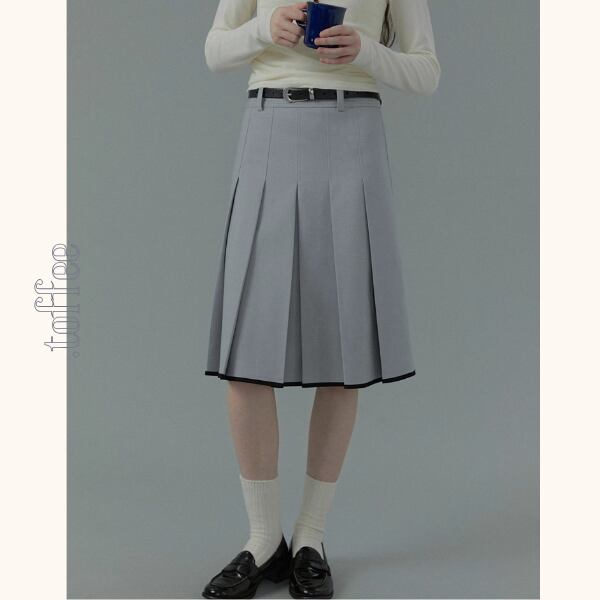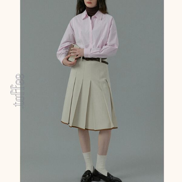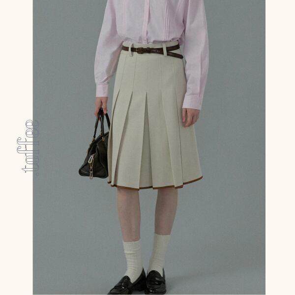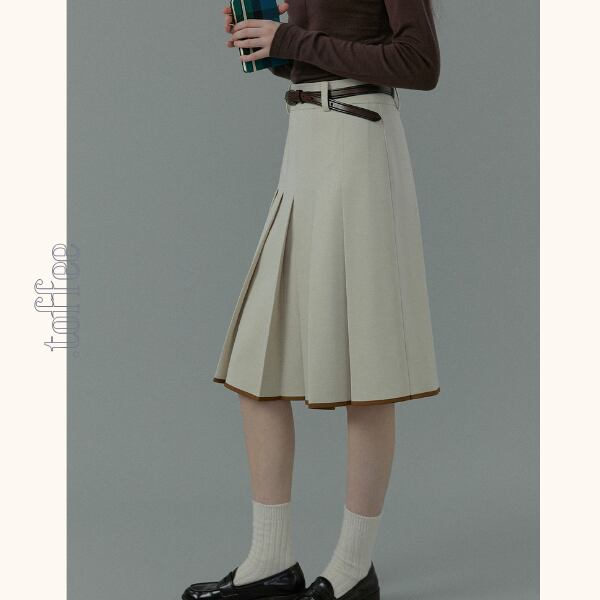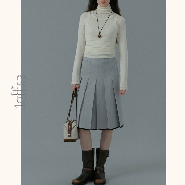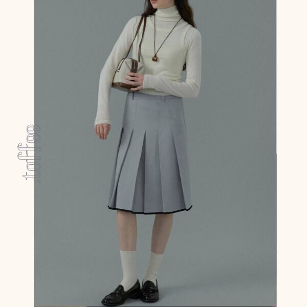 コントラストカラーのヘムがアクセントになったプリーツスカート。
