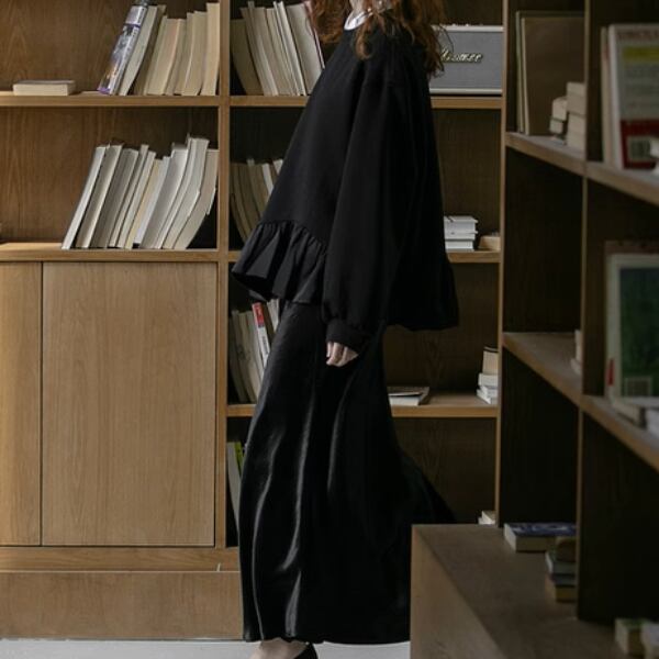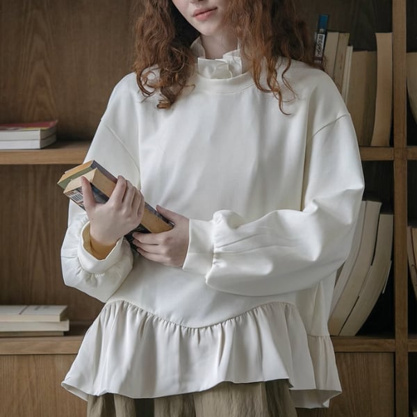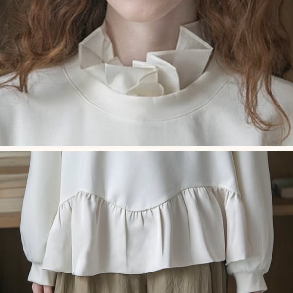 フリルヘムとバルーンスリーブが特徴的なブラウス。ゆったりとしたシルエットでリラックスした着心地ながら、フリルが女性らしさを演出します。カジュアルなデニムからエレガントなスカートまで、どんなボトムスとも相性抜群。普段使いはもちろん、デートや女子会などにもおすすめです♡