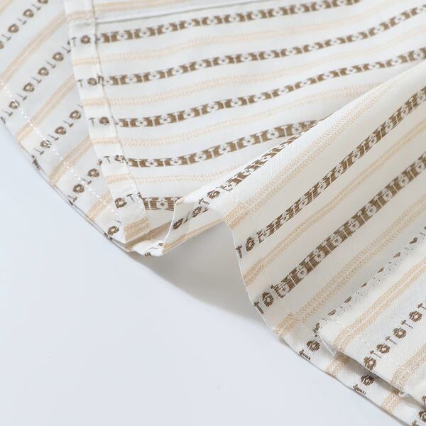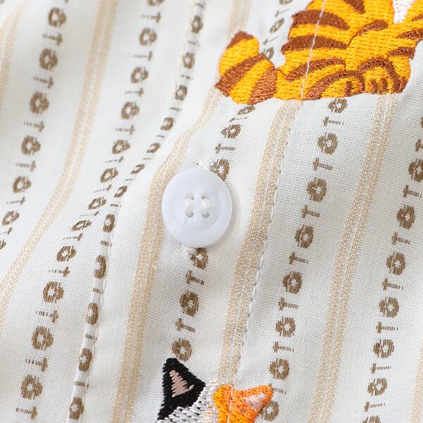 縦ストライプのすっきりとしたデザインに、カラフルな猫の刺繍がアクセントになったショートスリーブシャツ。