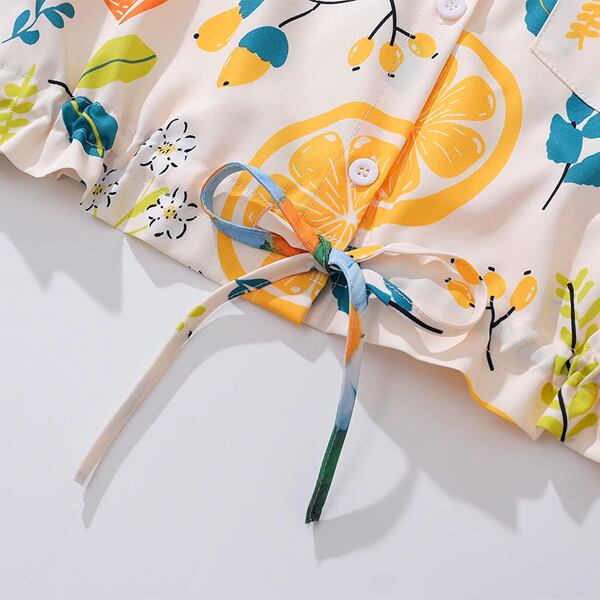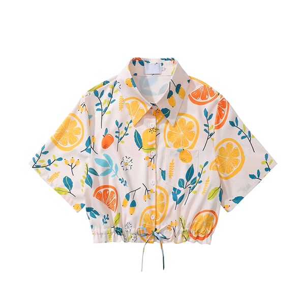 シトラスプリントドローストリングクロップドシャツ《Z00915》