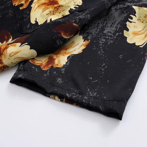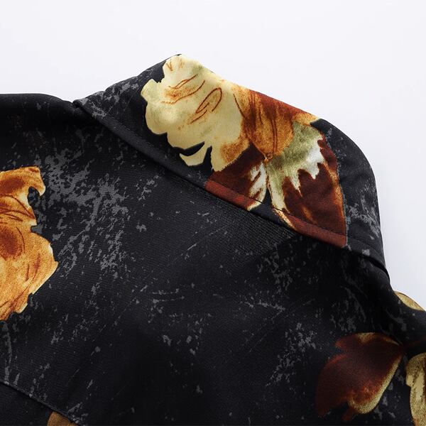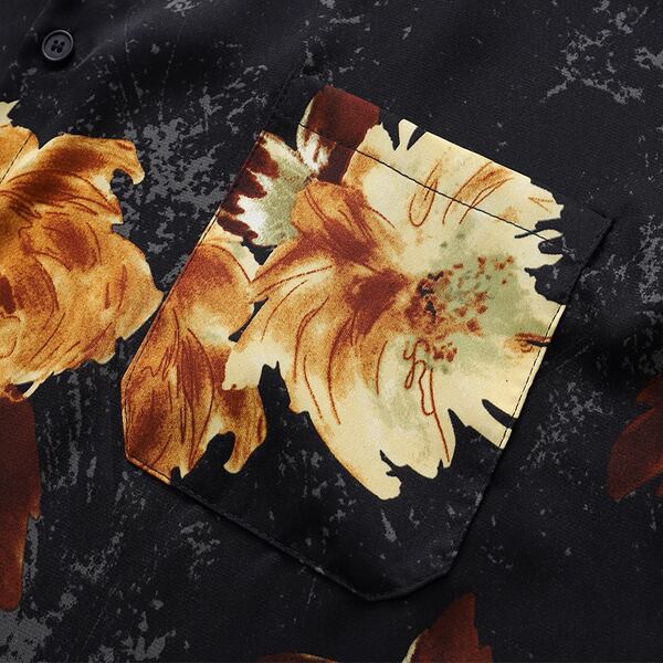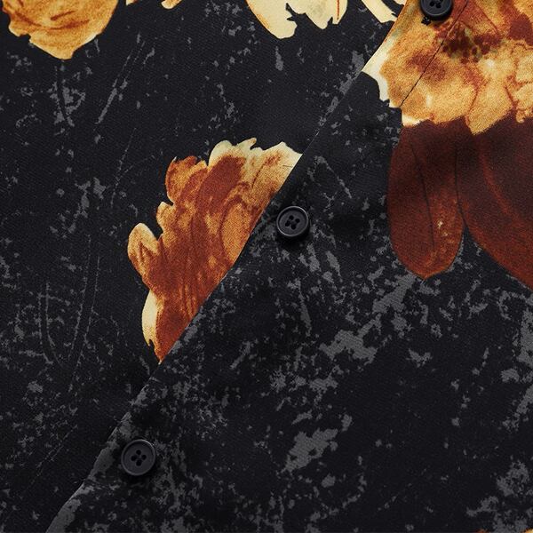 ブラックをベースに上品な花柄が散りばめられた、薄手のボックスシルエットシャツ。程よくゆとりあるシルエットで、リラックス感のある着心地が魅力です。一枚でサマになるデザインなので、着こなしの主役としてもおすすめです。