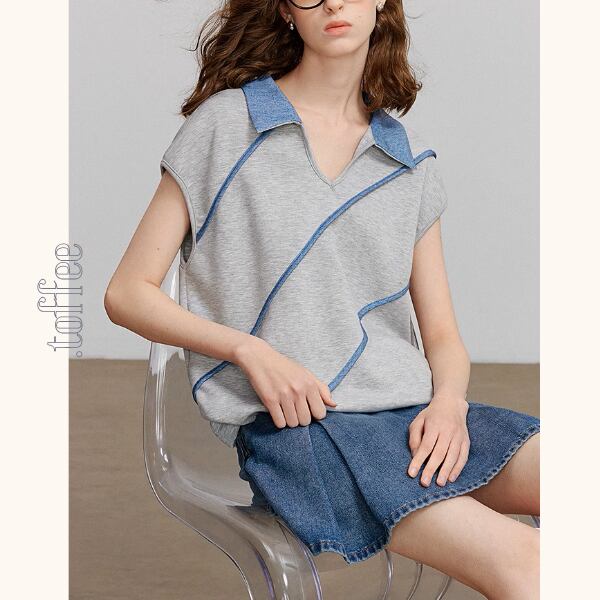 Vネックデザインでデコルテを美しく魅せ、さりげなく個性を演出します。