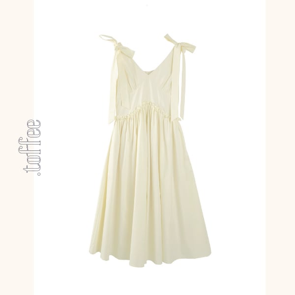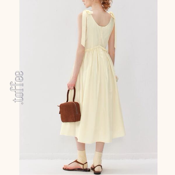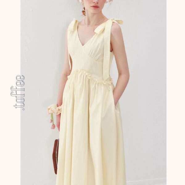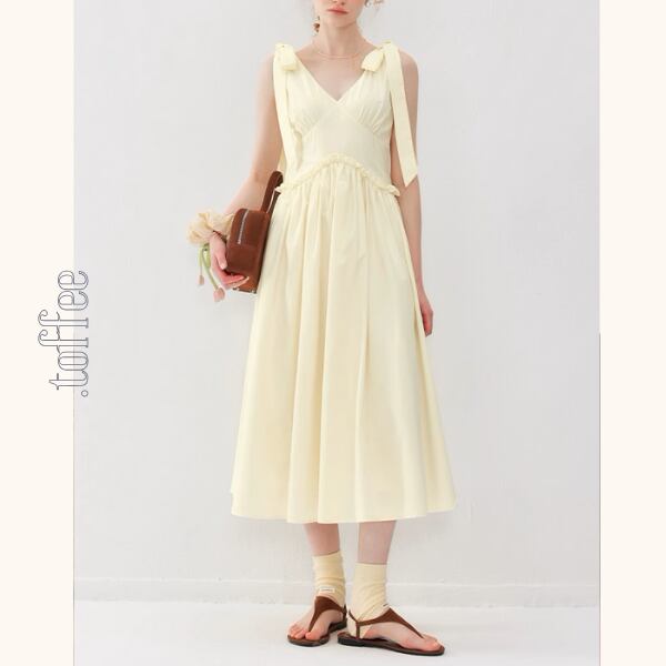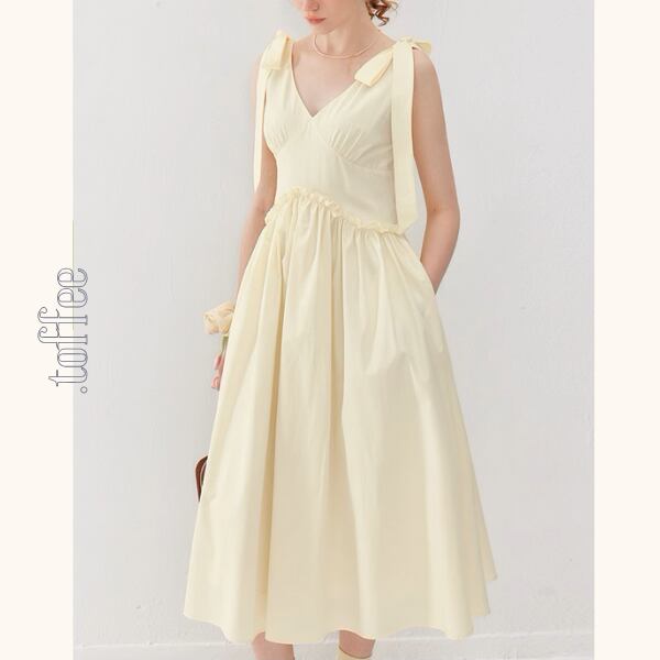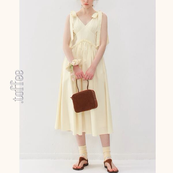 フェミニンなショルダーリボンが魅力のVネックワンピース。気品漂うデザインが、普段のコーディネートに特別な気持ちをプラスします。Vネックが顔周りをすっきり見せてくれる嬉しい効果も♡お気に入りのアクセサリーを身に着けてエレガントなコーデを楽しんでくださいね。