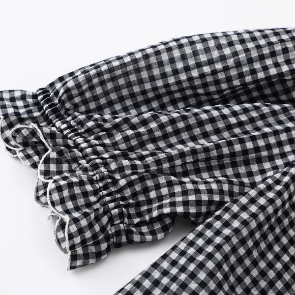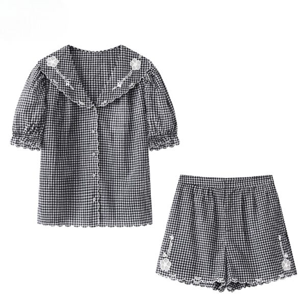 ギンガム刺繍ブラウス&ショートパンツセットアップ《Z01038》