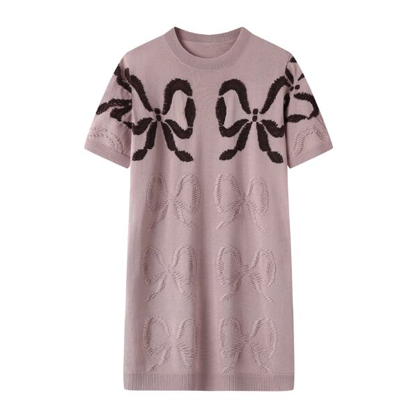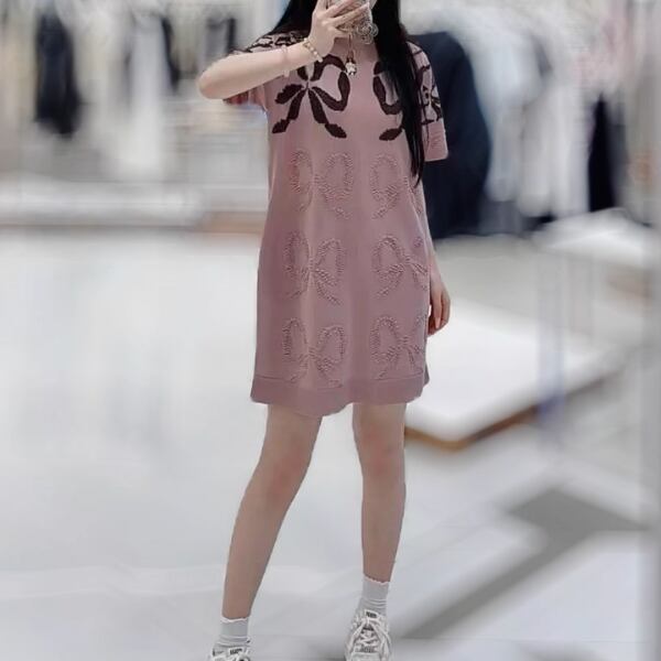 【2color】立体リボン刺繍ニットワンピース《Z01041》