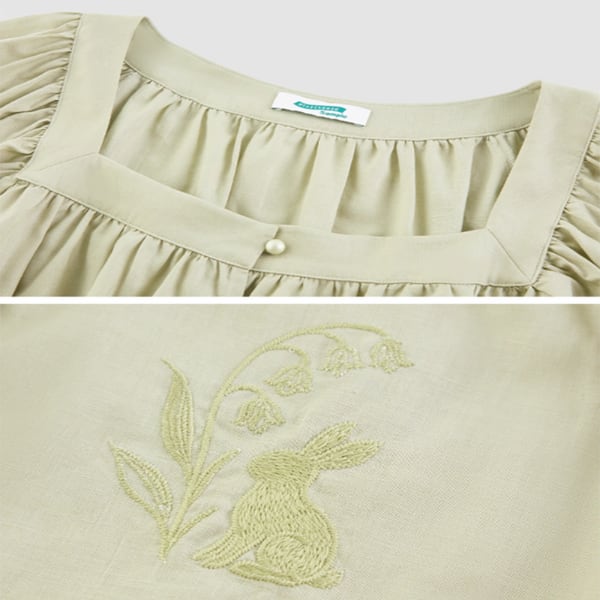 【2color】刺繍うさぎのスクエアネックブラウス《Z01046》