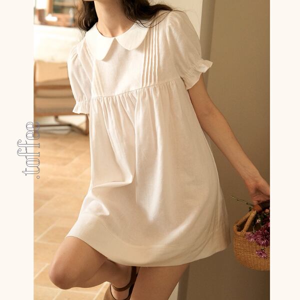 どこか懐かしく、でも新しい——そんな気分をまとえるドールカラーワンピース。胸元にはさり気ないプリーツをあしらい、控えめながらも洗練された可愛らしさを演出します。ふんわり広がるシルエットは体型を優しく包み込み、ナチュラルな着心地を実現。