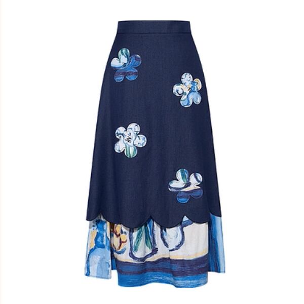 レトロ可愛い花刺繍レイヤードスカート《Z01056》