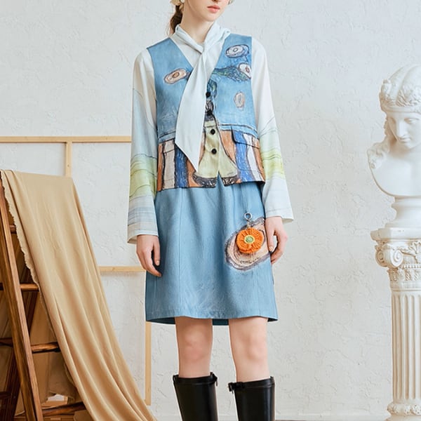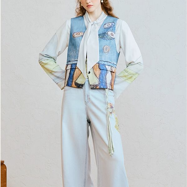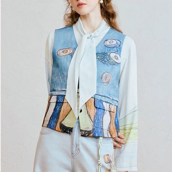 絵画のようなVネックアートベスト《Z01064》