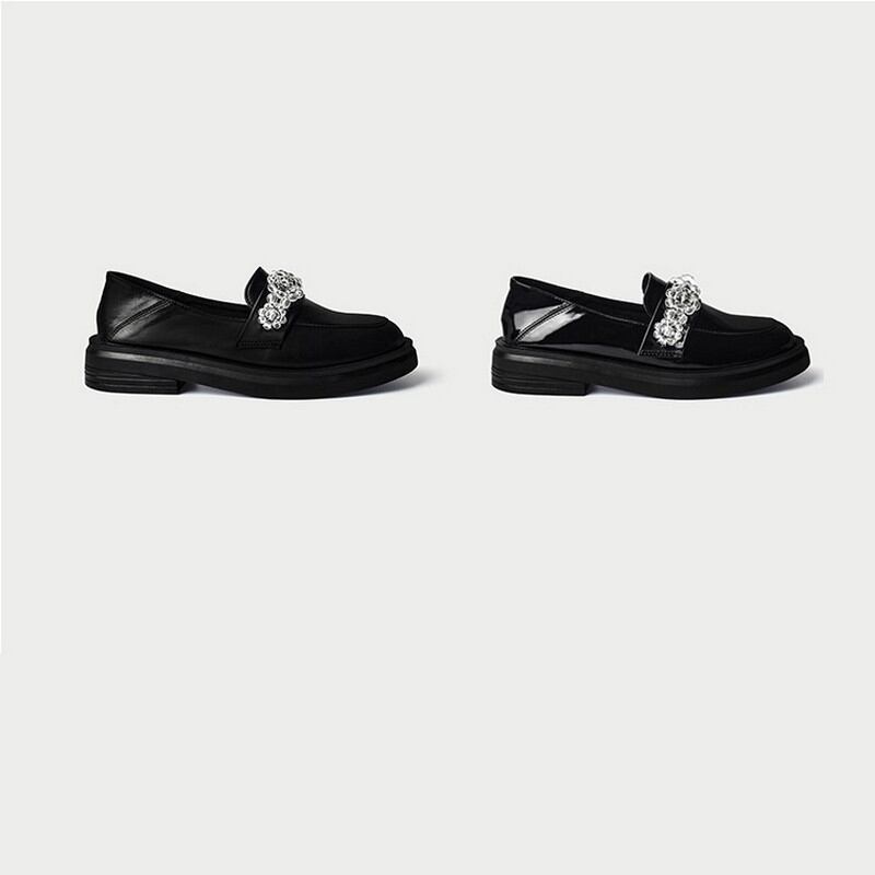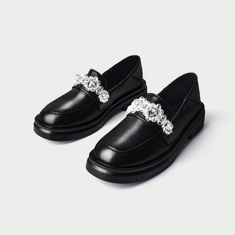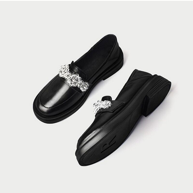 厚底なレトロデザインとビジューが素敵なローファー