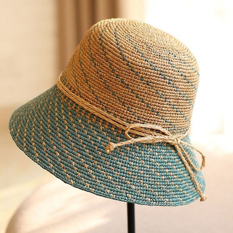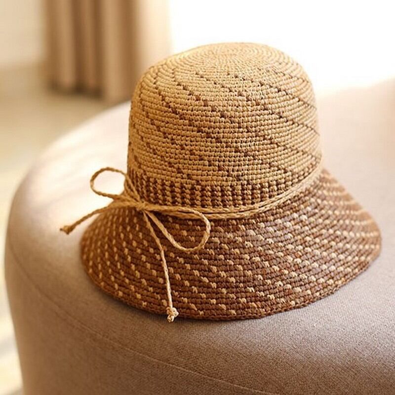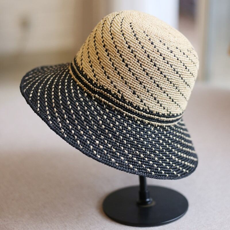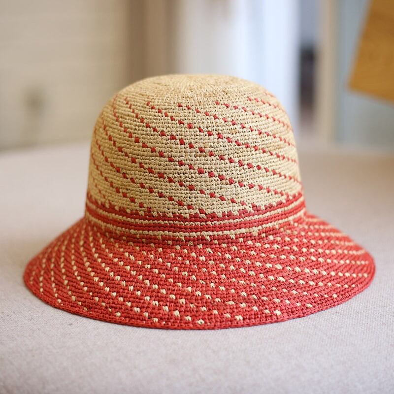 2トーンカラーのミックス編みがとてもおしゃれで可愛らしい麦わら帽子