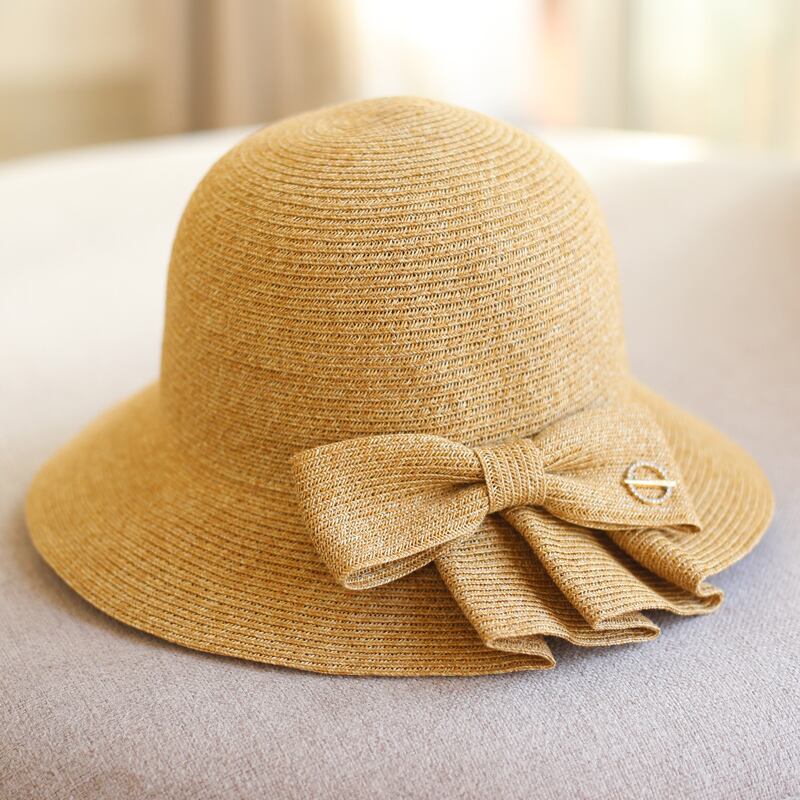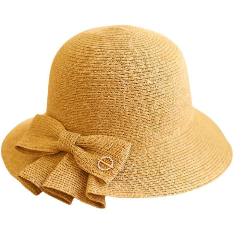 リボン下のツバがプリーツになっているディテールが凝ったストローハット