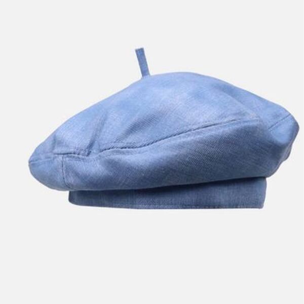 優しいフォルムのシンプルなブルーベレー帽。
