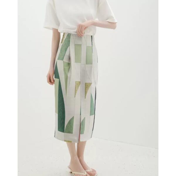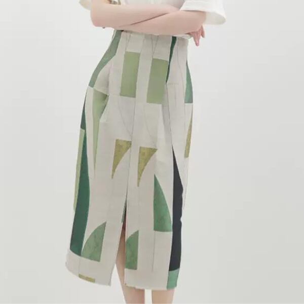 不規則にあしらわれたプリントが大人かわいいスカート。