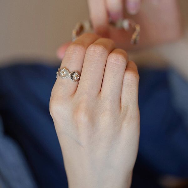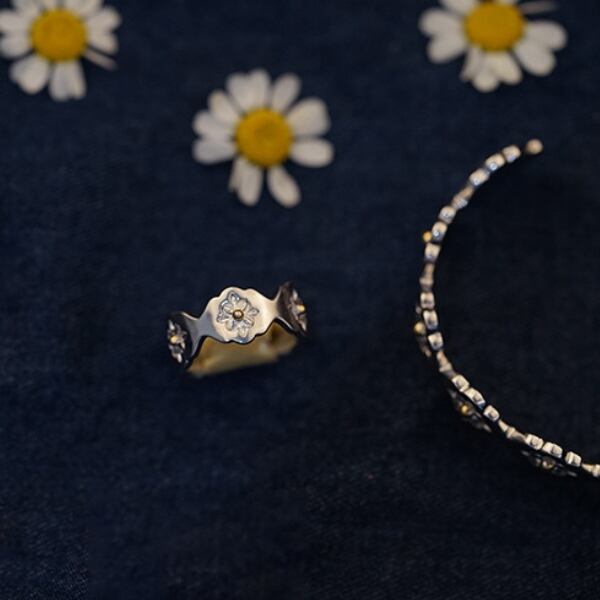デイジーがデザインされた大人キュートなリング。