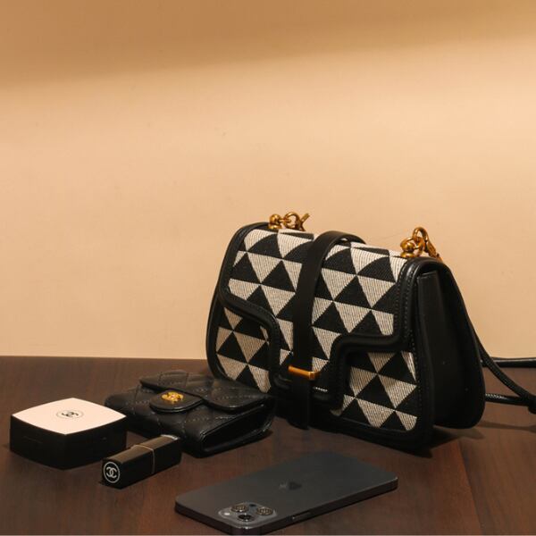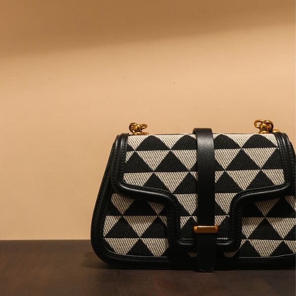 トライアングルがあしらわれたシンプルな万能アイテム。