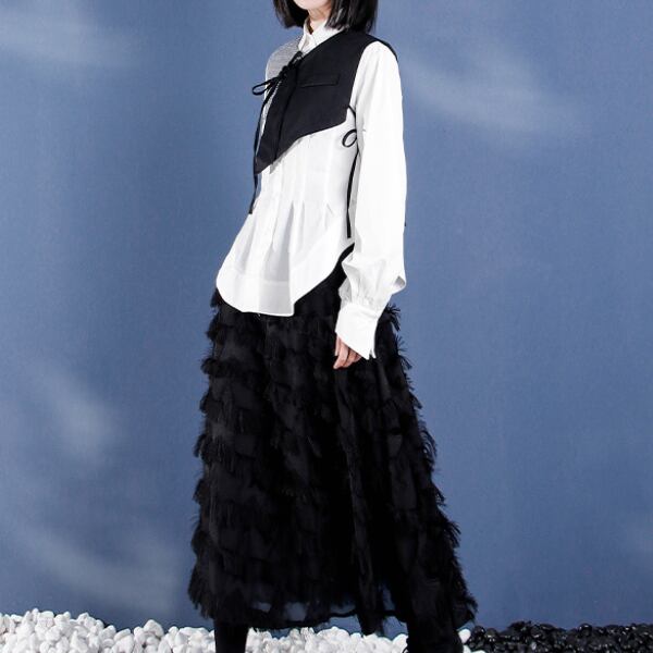 ウエストスクイーズラウンドヘムシャツ AU-413