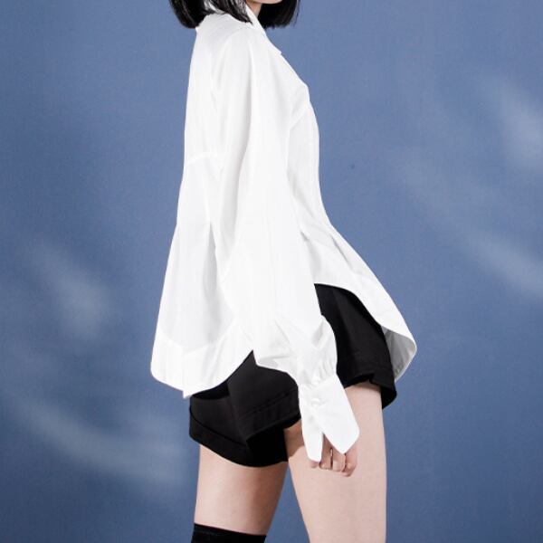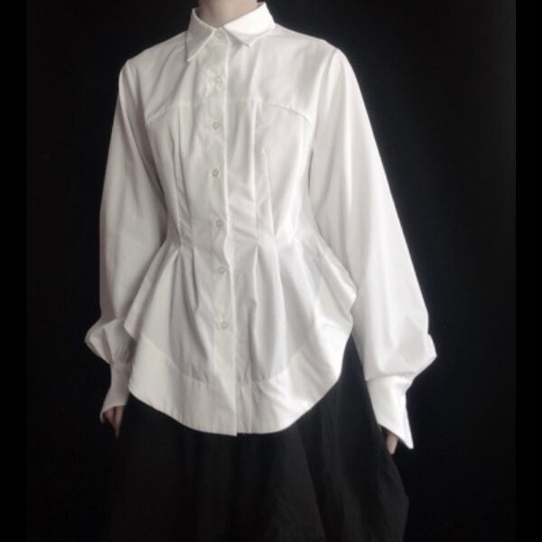 ウエストラインが絞られたスタイルアップが期待できるシンプルなシャツ。