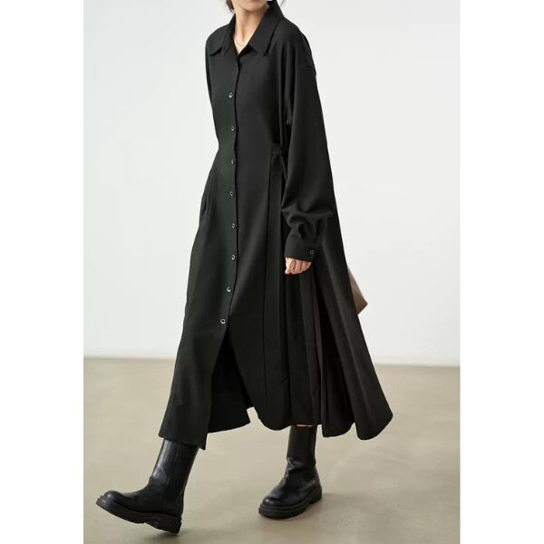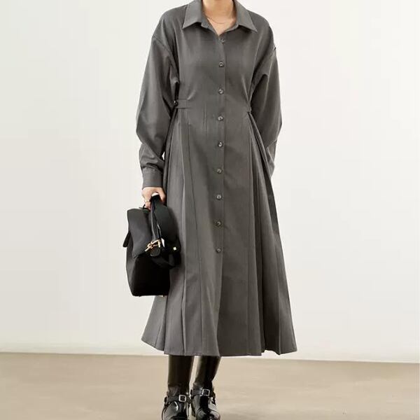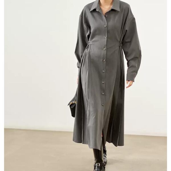 動く度ひらりと揺れるサイドプリーツが女性らしさを演出してくれる一着。