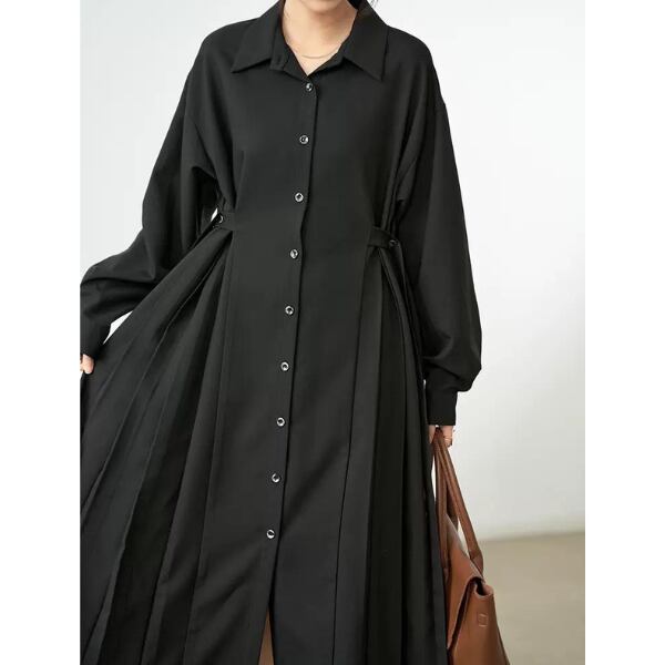 【2color】サイドプリーツフレアワンピース w-058