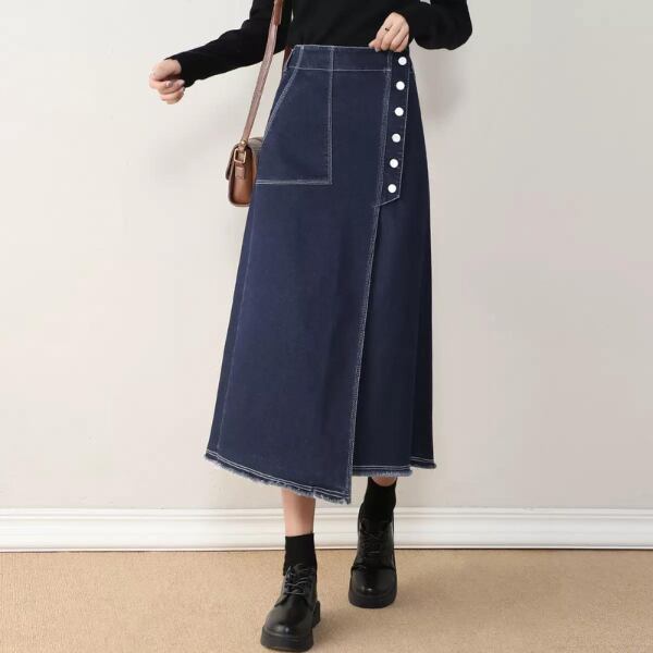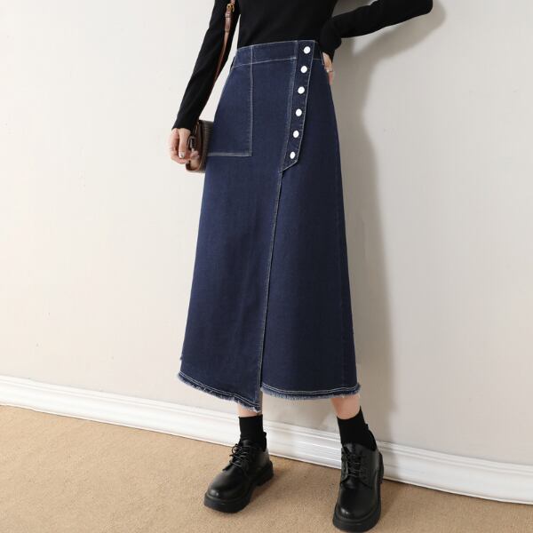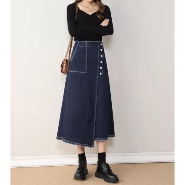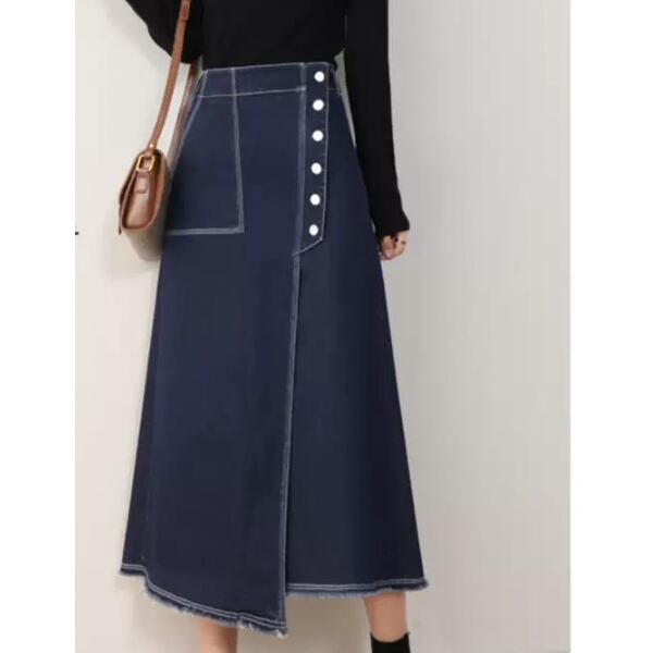 ボタンデザインとステッチがアクセントになった大人なスカート。