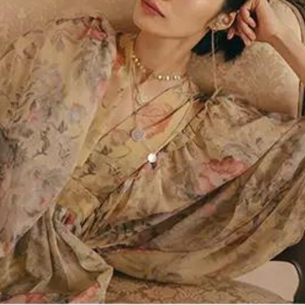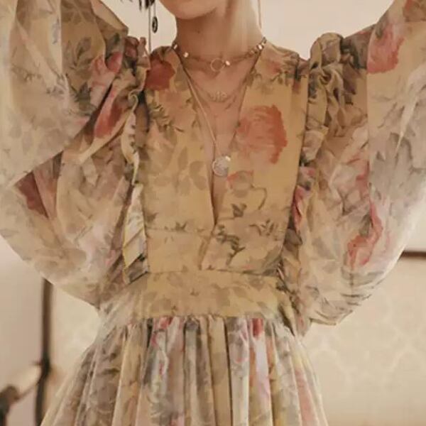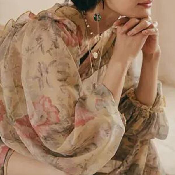 袖とスカートの、風に揺らぐボリューム感が美しい一枚。