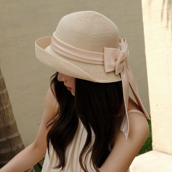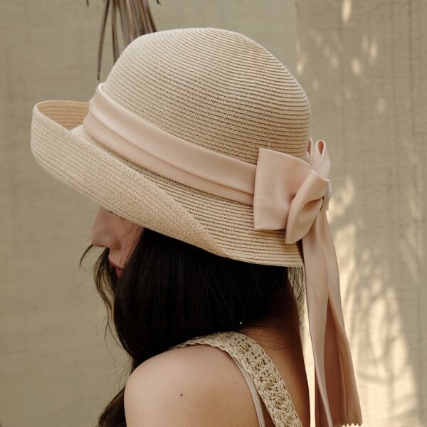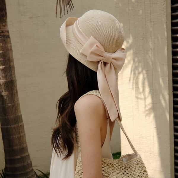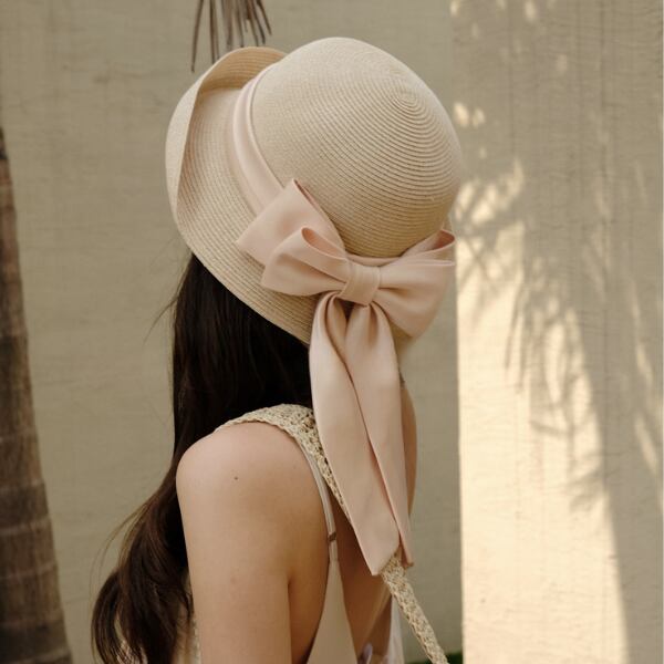 大きなリボンが目を惹くストローハット。