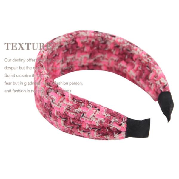 鮮やかなピンクのツイードニットでキュートなカチューシャ。
