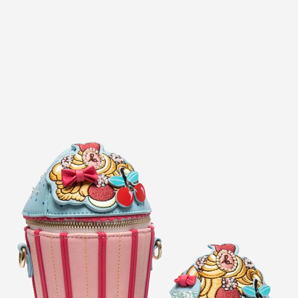 たっぷりのデコレーションがキッチュでかわいいアイスクリーム型のバッグ。