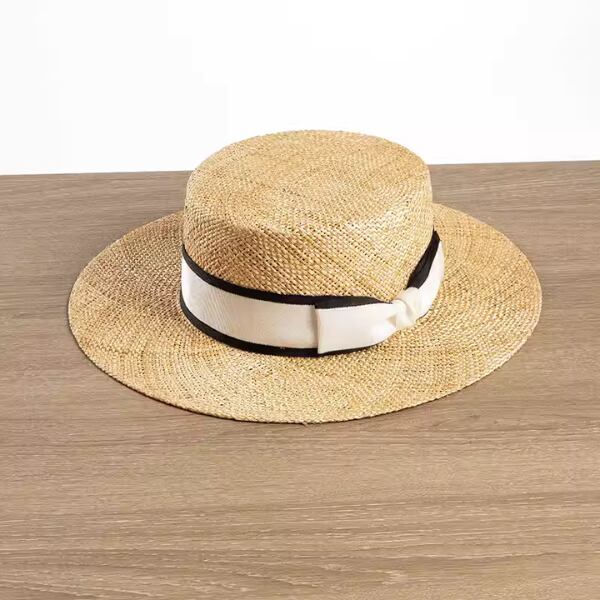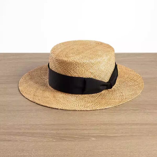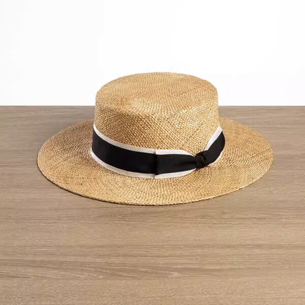 シンプルなリボン付きカンカン帽。合わせやすく、ちょっぴりレトロな雰囲気もプラスしてくれるので、スタイリングのアクセント使いに。