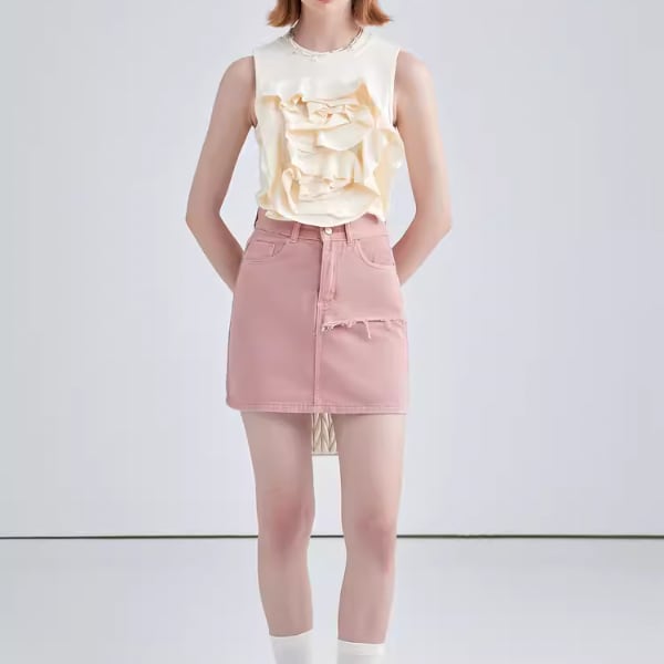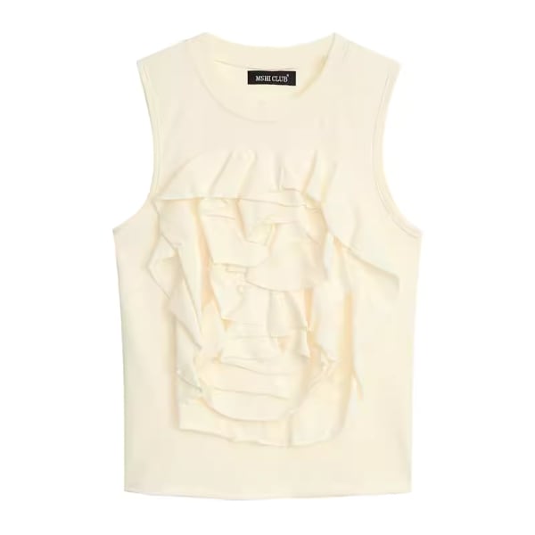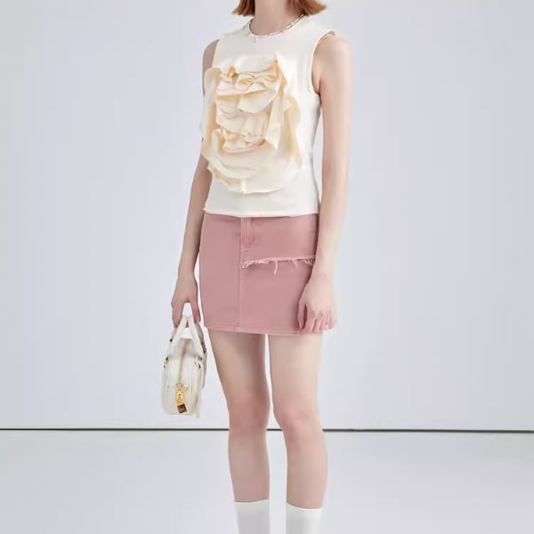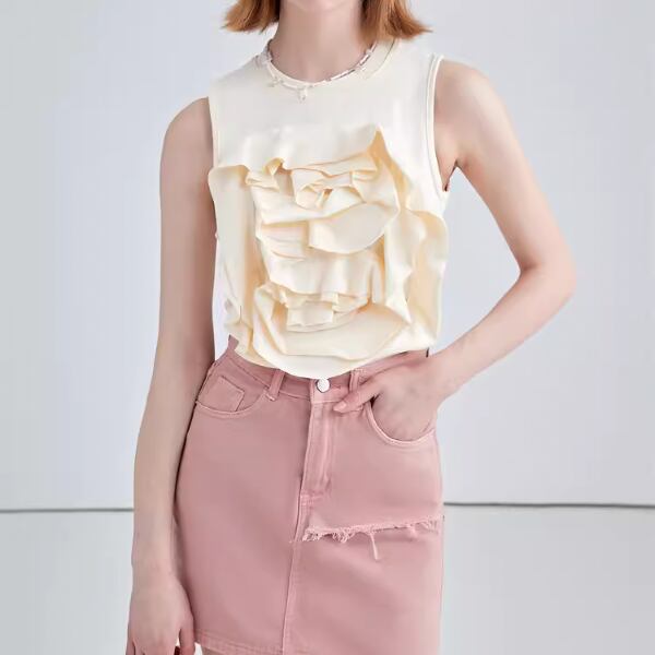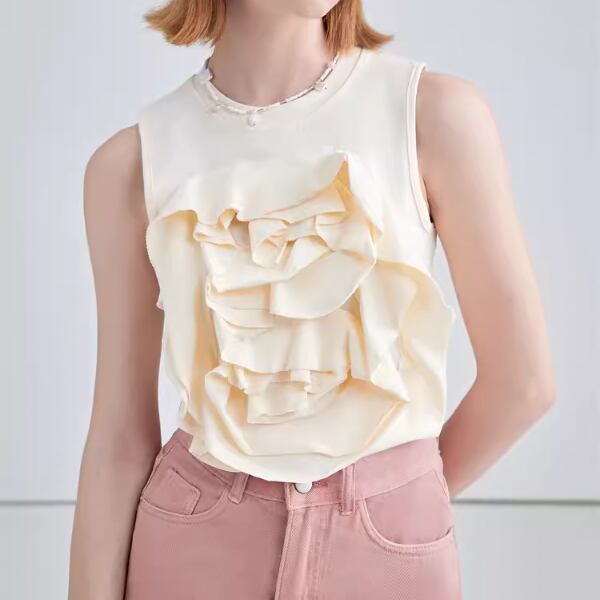 【2color】フラワーデコレーションノースリーブトップス W-201