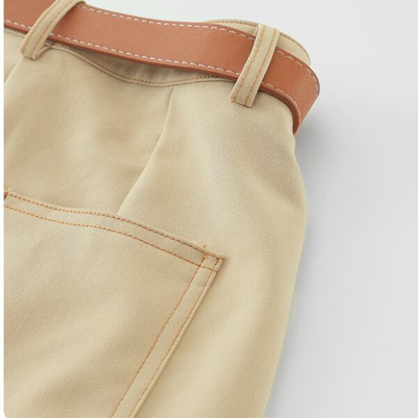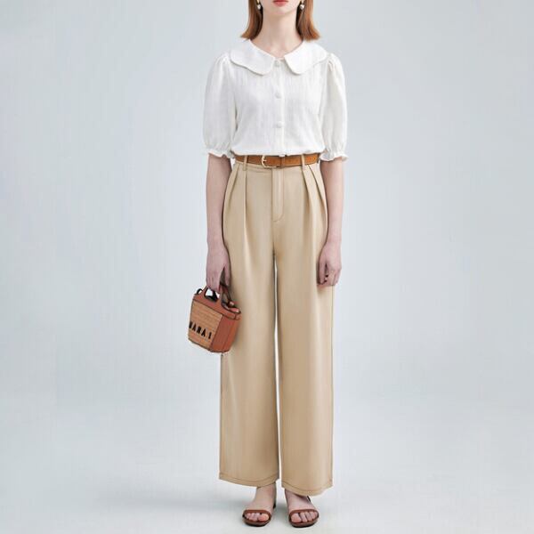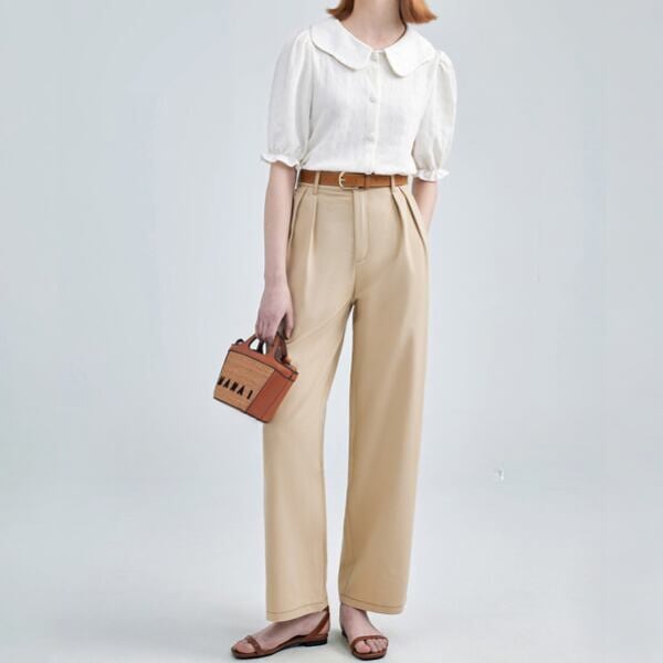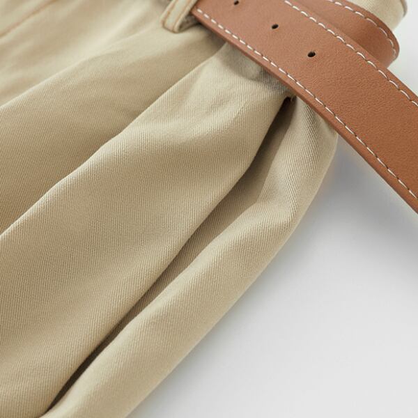 ボリュームのパンツにはコンパクトなトップスでバランスよく◎