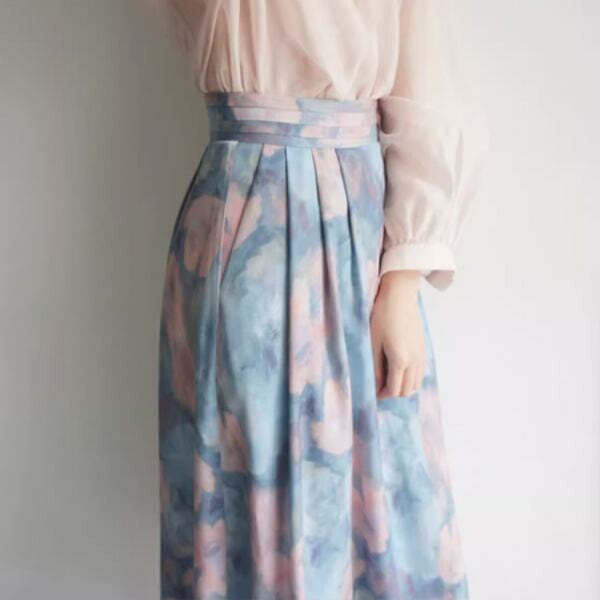 油絵風フラワープリントスカート X-270
