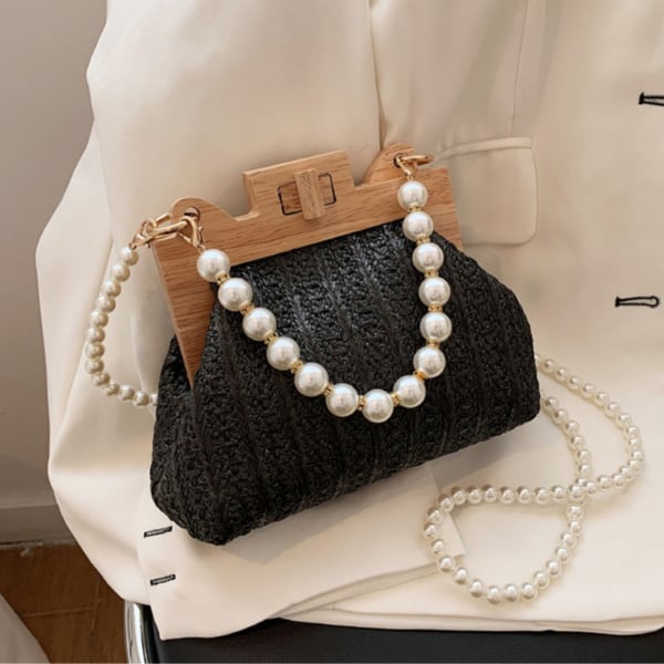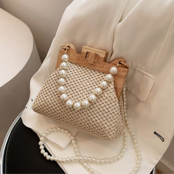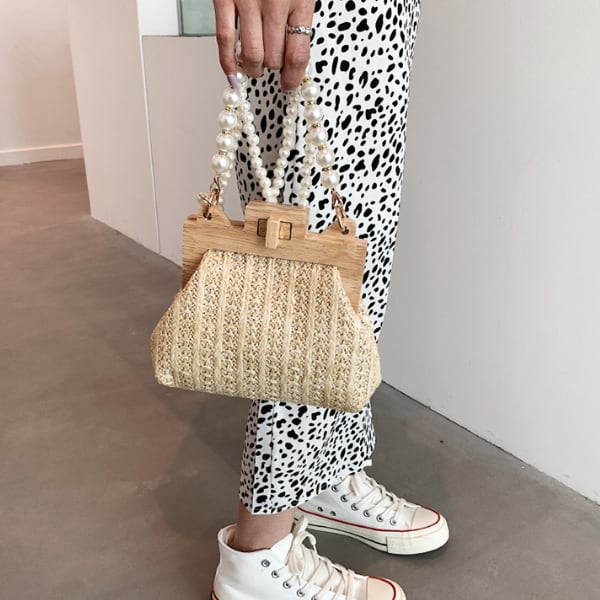 パールが華やかなスモールサイズのストローバッグです。