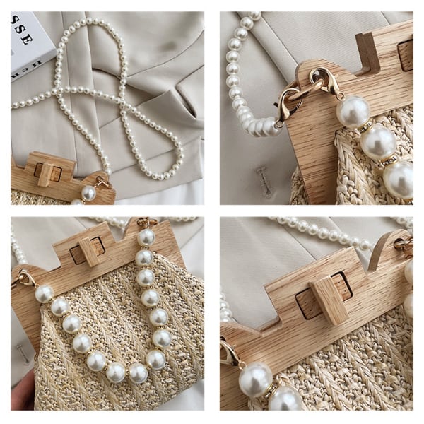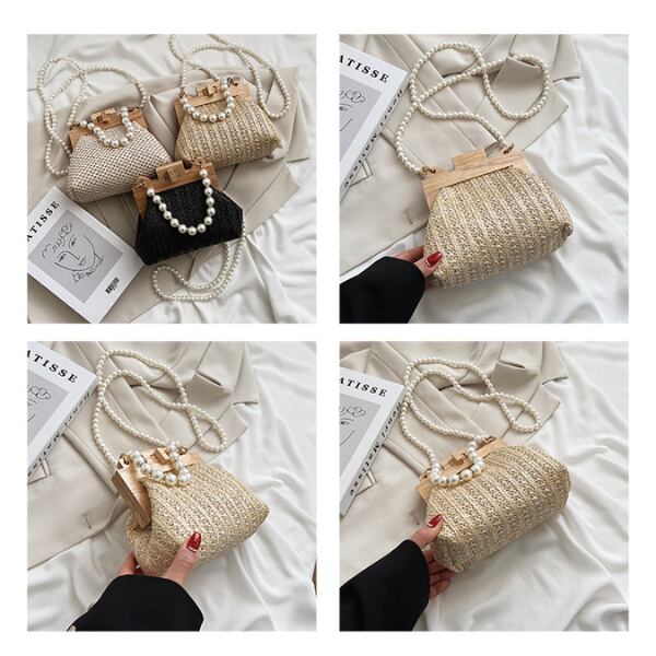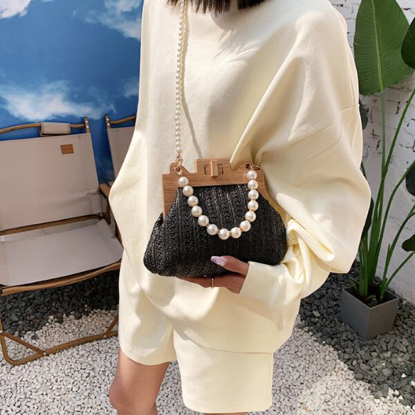 【3color】パールストラップエレガントストローバッグ X-274