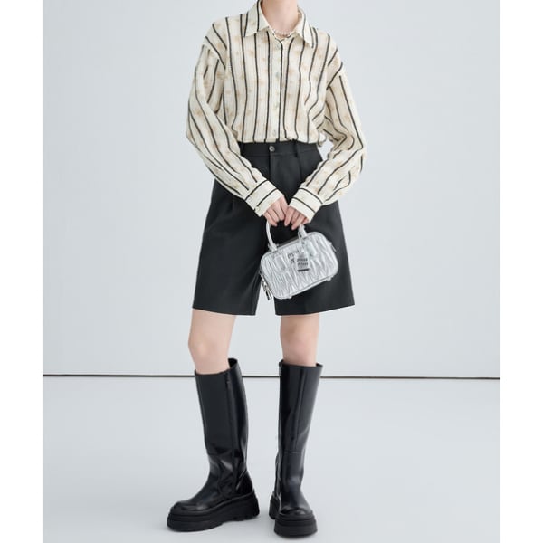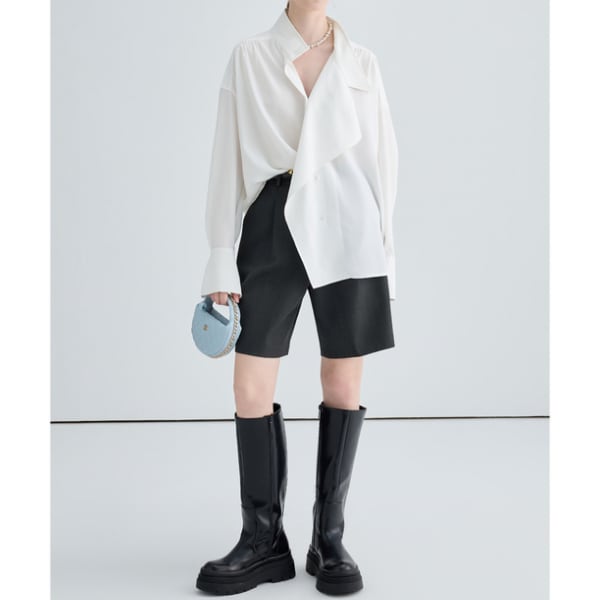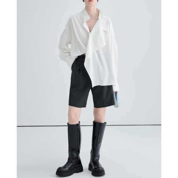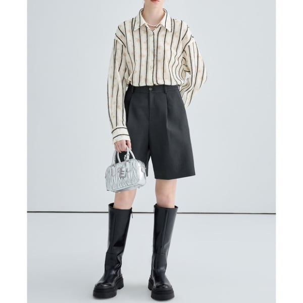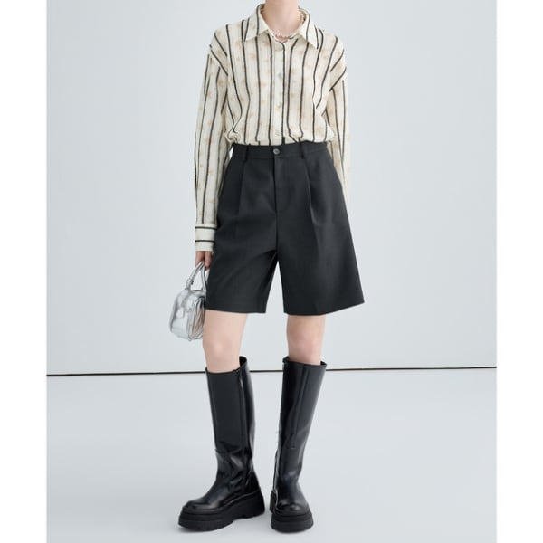 カジュアルにスタイリングするならブーツやデザインソックスを合わせて足元で遊べます。