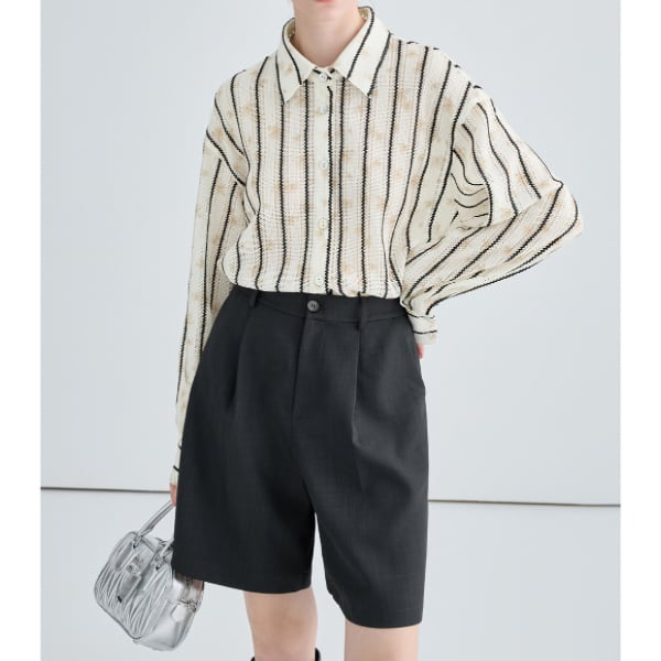 ニットやシャツなど何にでも合わせやすく、万能アイテムです。