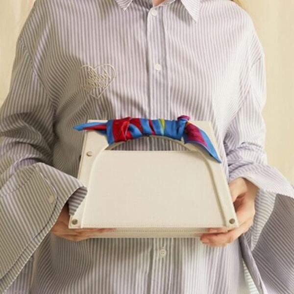 台形のかっちりしたボックス型ハンドバッグ。