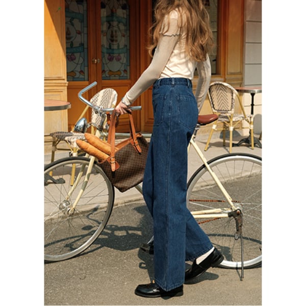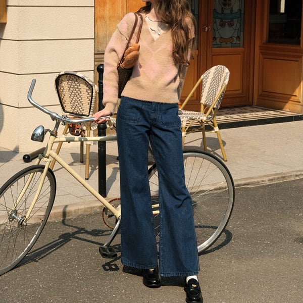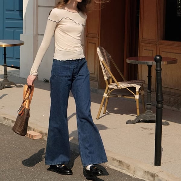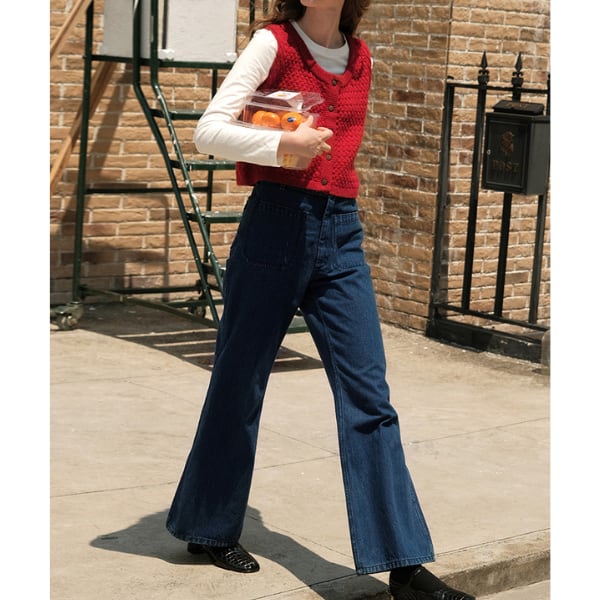 膝下からきれいに広がるフレアラインで足長効果が抜群のデニム。