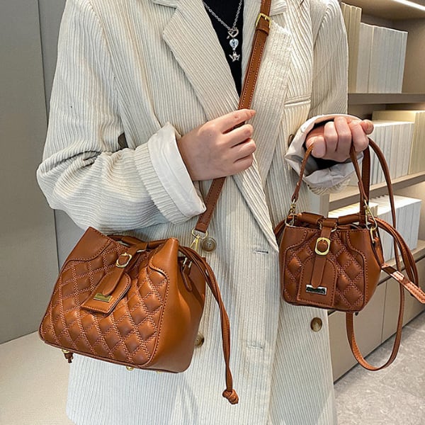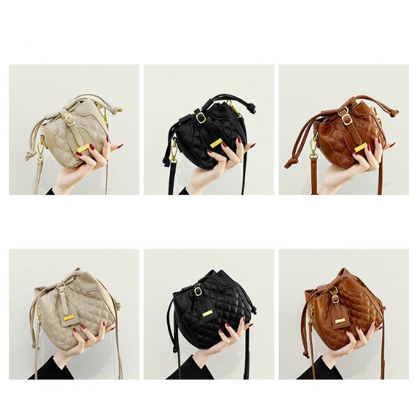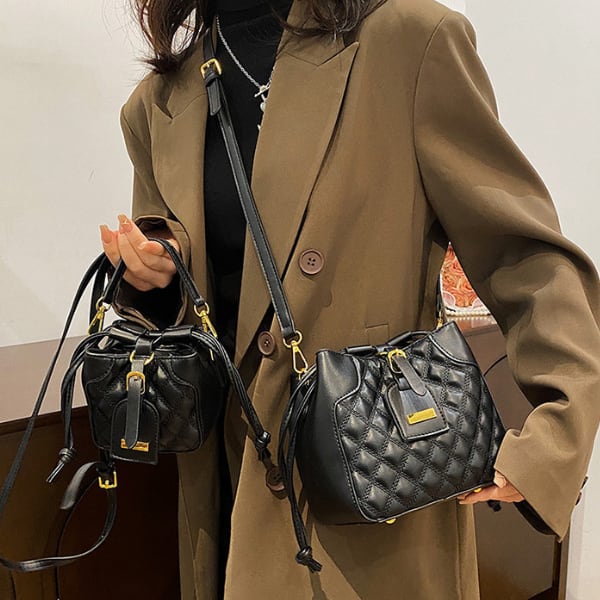 シンプルながらもおしゃれなデザインが特徴のショルダーバケットバッグ。