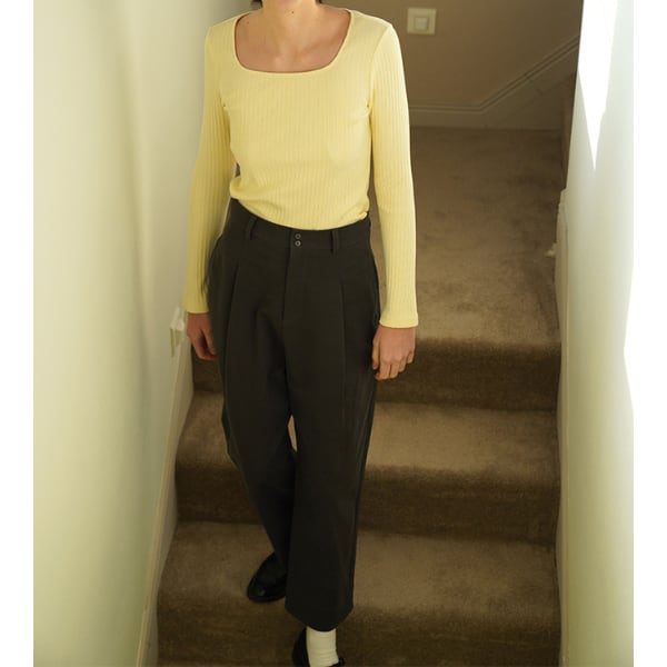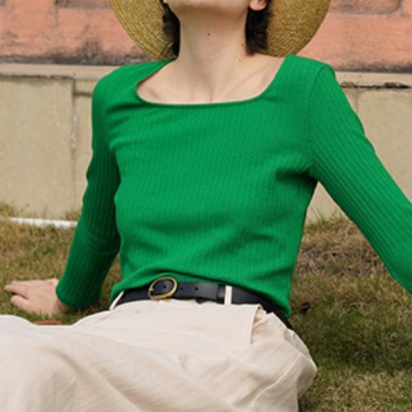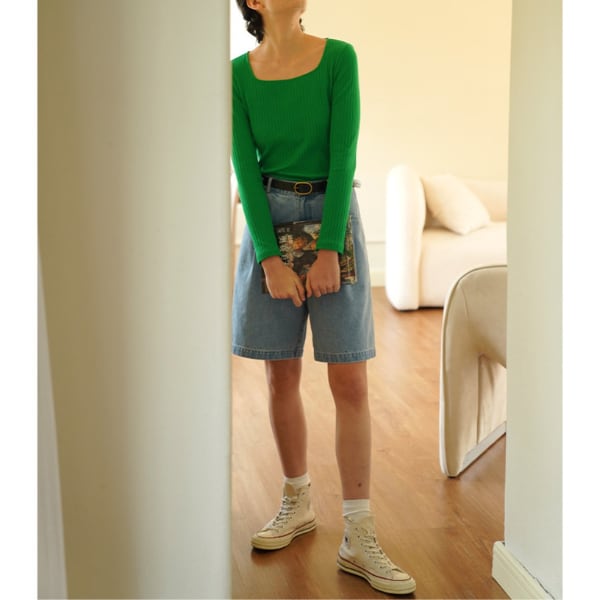 スクエアカラーが顔周りをすっきりと見せてくれます。
