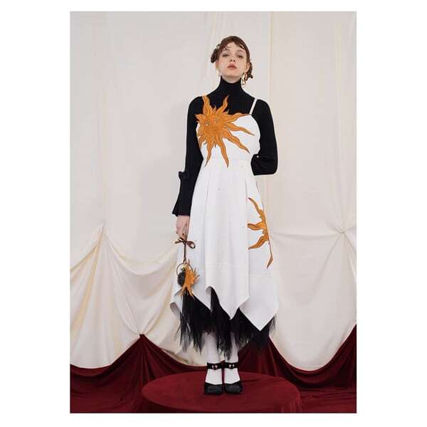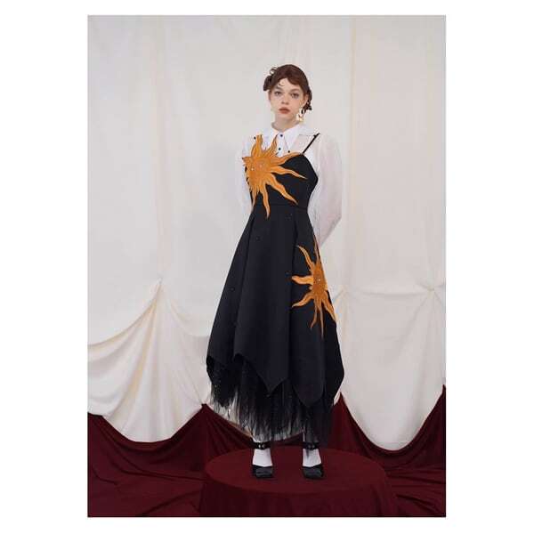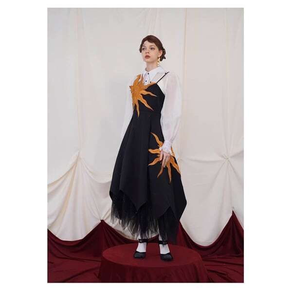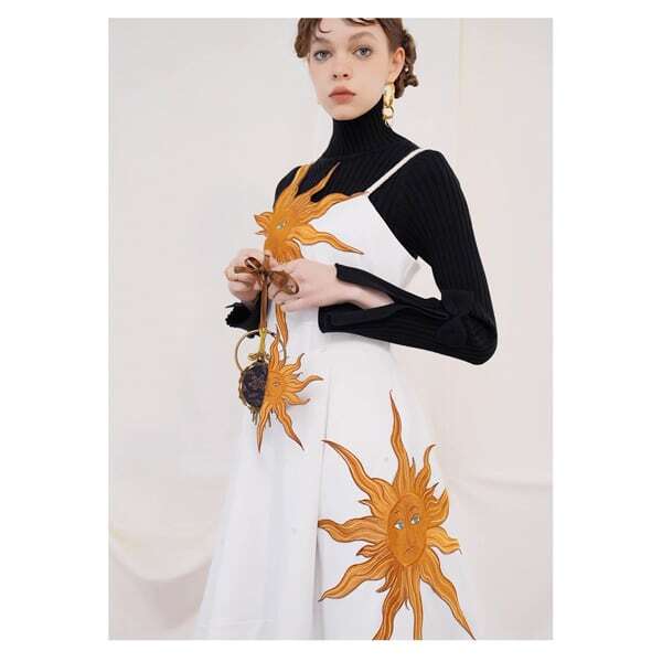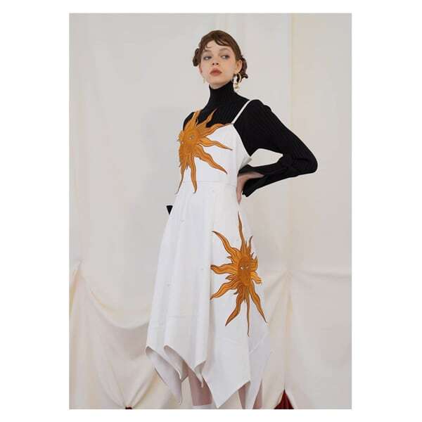 ロマンチックな神話を連想させる太陽の刺繍が施されたワンピース。