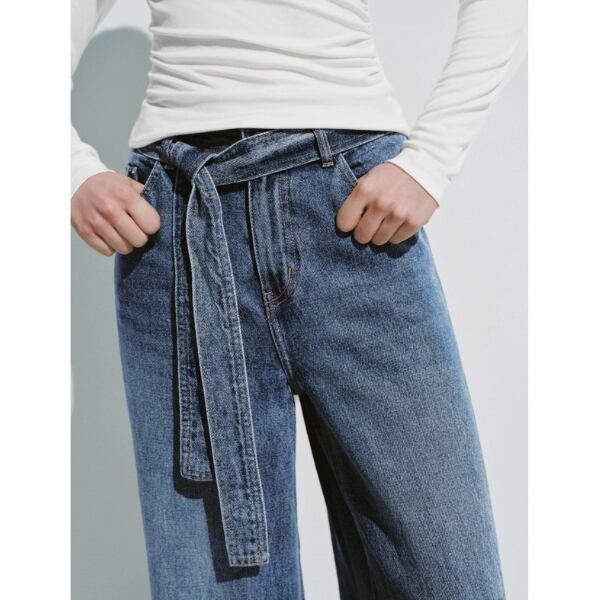 ウエストベルト付きワイドレッグデニムパンツ X-525