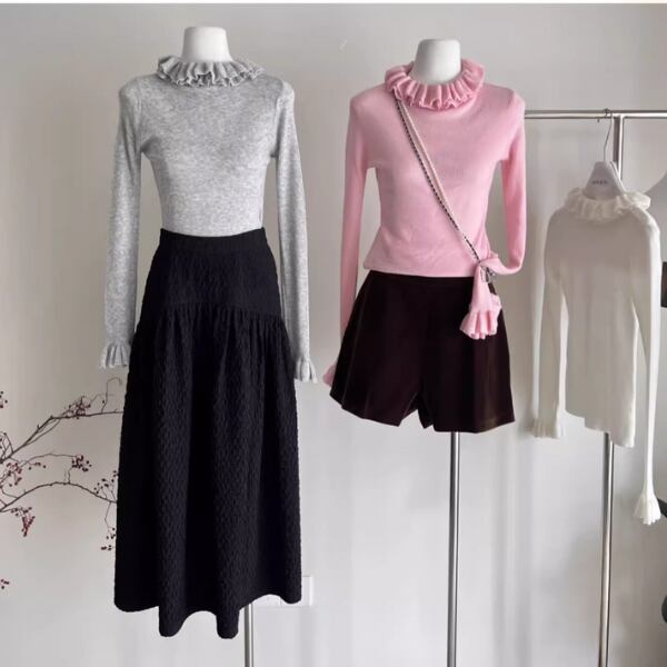 保温効果も抜群で、寒い季節には重ね着として活躍し、それだけで一枚で着ても可愛らしいコーディネートになります。