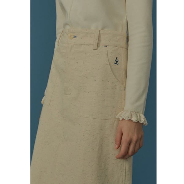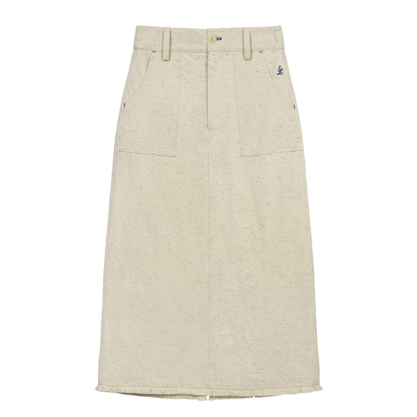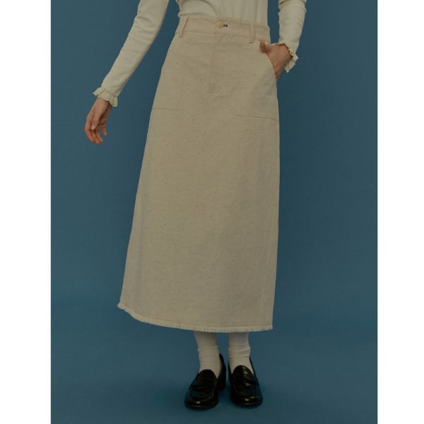 裾のフリンジがポイントのAラインミモレ丈スカート。