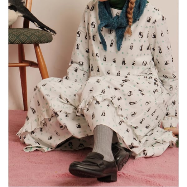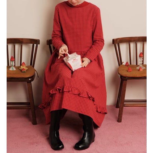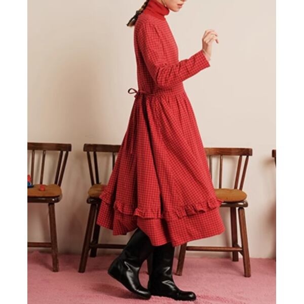 ふんわりとしたシルエットが可愛らしい長袖ワンピース。