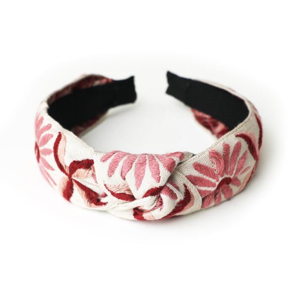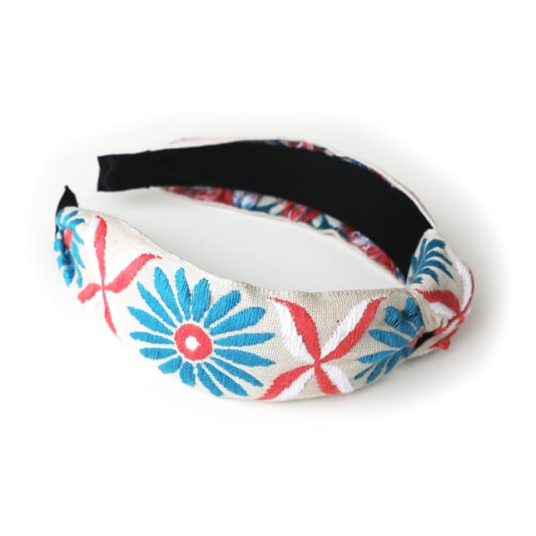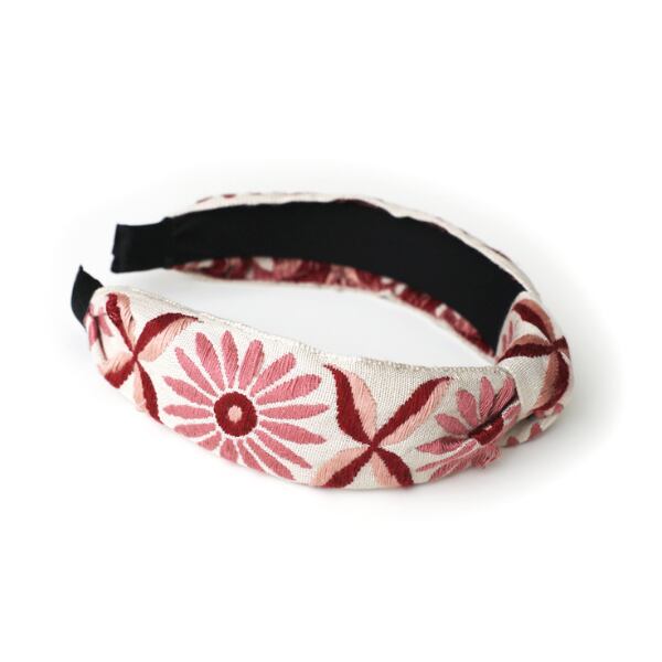 気品溢れるアクセントを演出する、サンフラワー刺繍入りクロスカチューシャ。