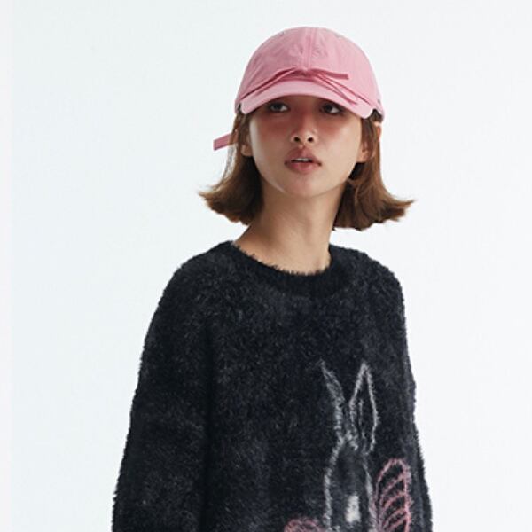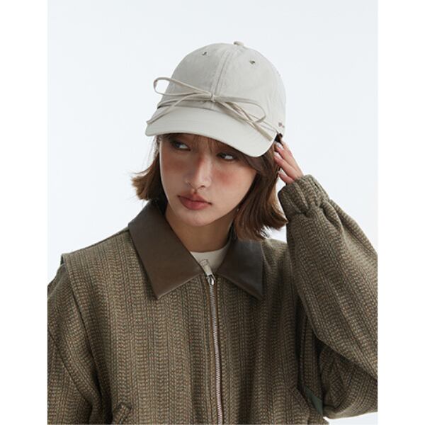 可愛らしいフロントリボンがポイントのベースボールキャップ。