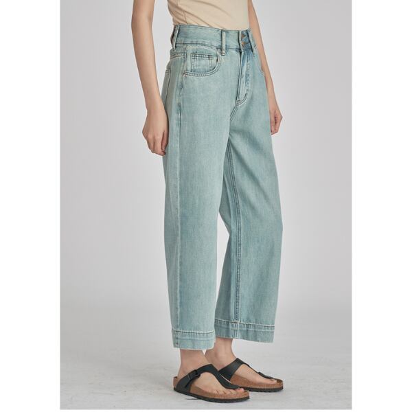 ウォッシュド加工が施されたワイドレッグジーンズ。